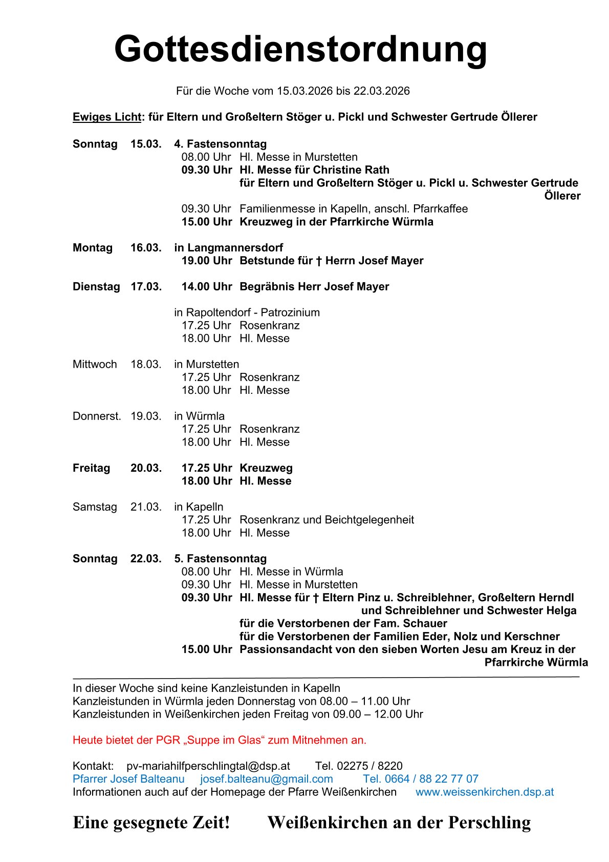 Gottesdienstordnung 15.03.2026 - 22.03.2026