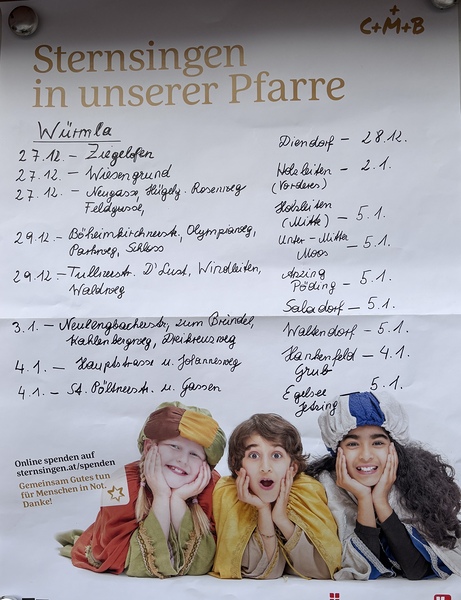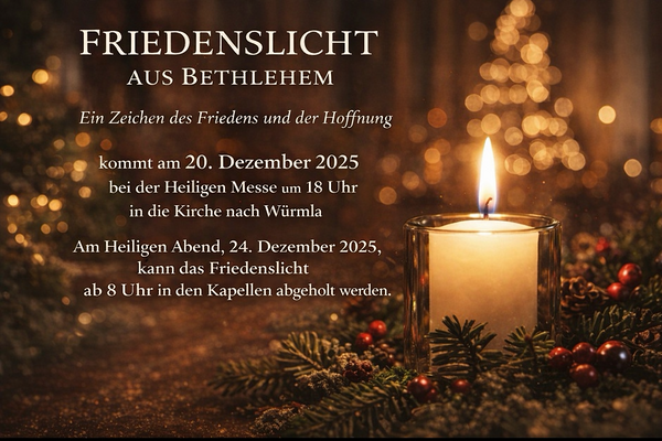 Krippenandacht Herzliche Einladung zur Krippenandacht am Heiligen Abend, 24.12.2025, um 16 Uhr in der Pfarrkirche Würmla. mehr: Krippenandacht