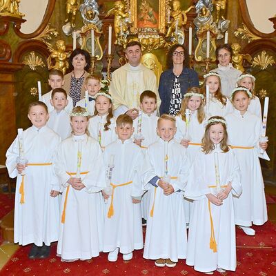 Erstkommunion 29.05.2025 14 Kinder erhielten am 29. Mai von Herrn Pfarrer Josef ihre erste hl. Kommunion, (ein Kind war krank). zu den Bildern: Erstkommunion 29.05.2025
