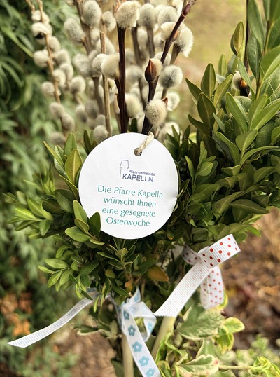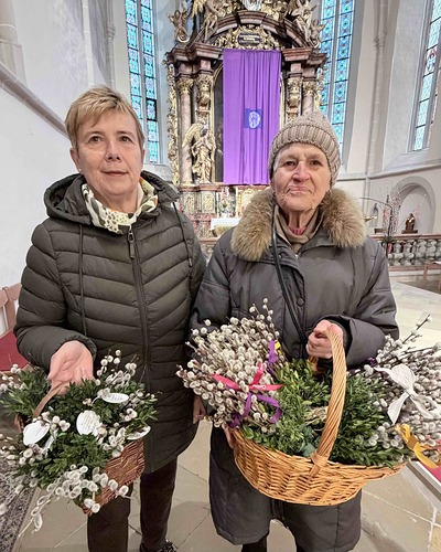 Mit viel Engagement haben Frau Kaiblinger und Frau Harm auch heuer wieder Palmbuschen für jene vorbereitet, die nicht in die Kirche kommen konnten – ein wertvolles Zeichen gelebter Gemeinschaft.