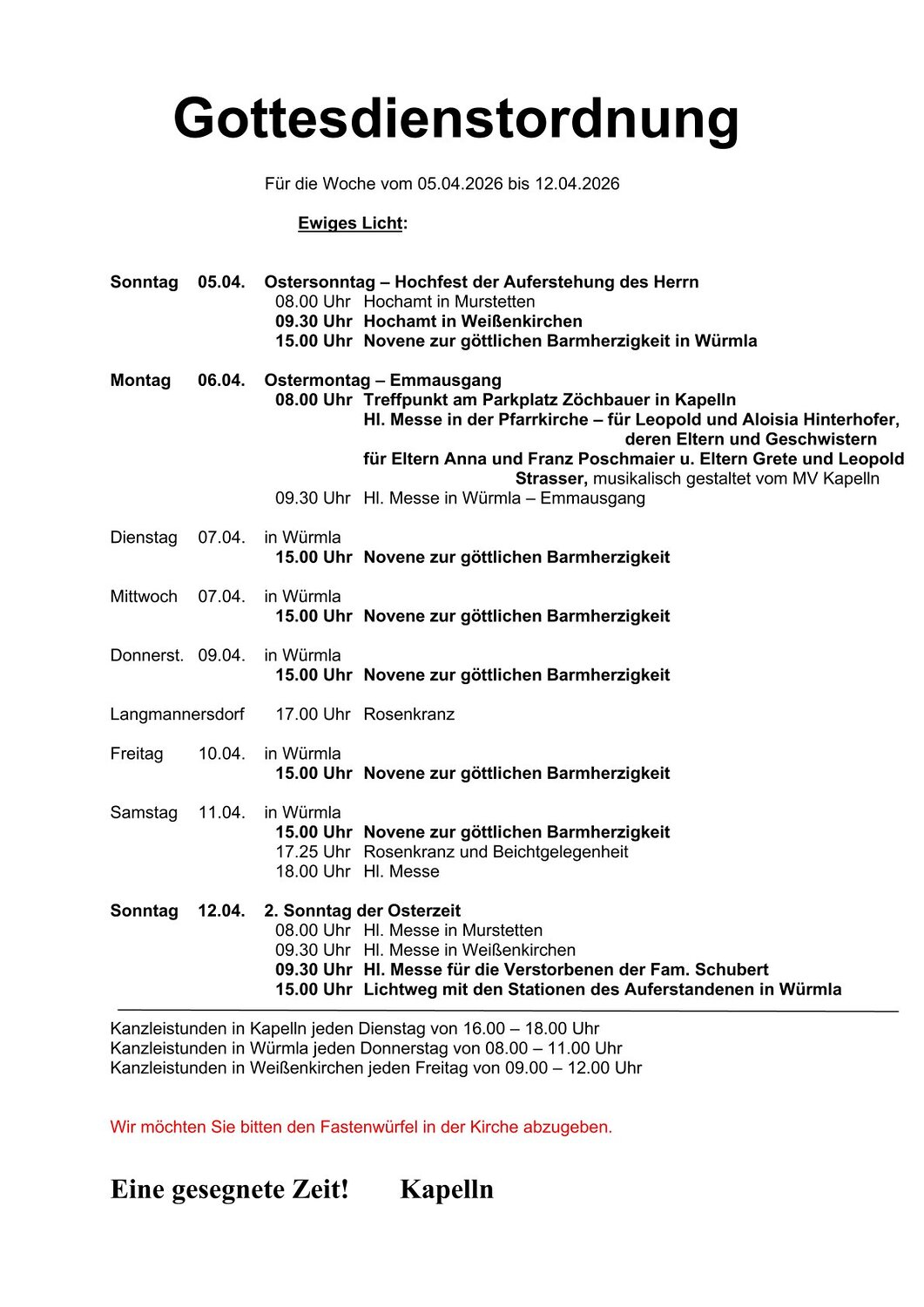 Gottesdienstordnung 05.04.2026 - 12.04.2026